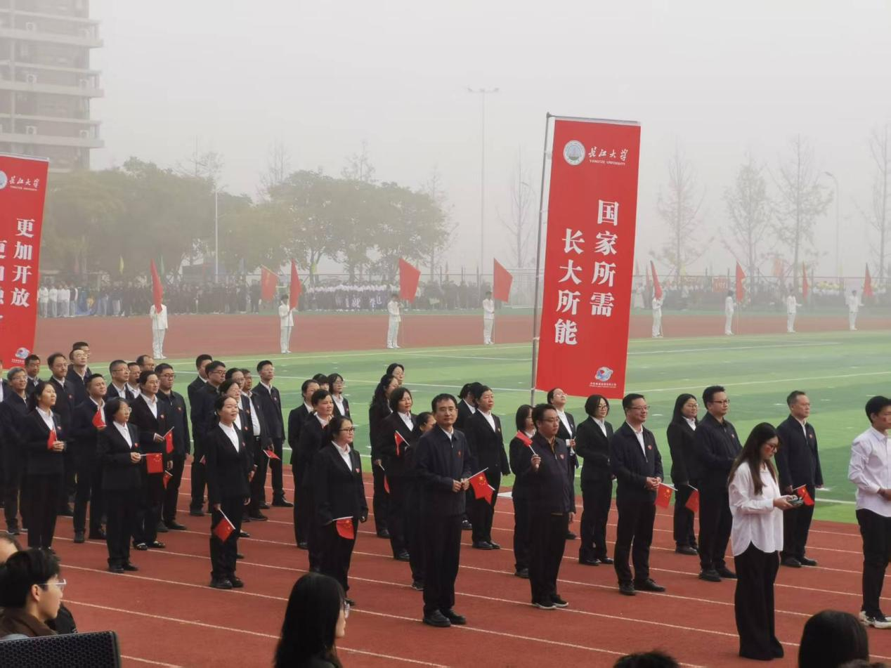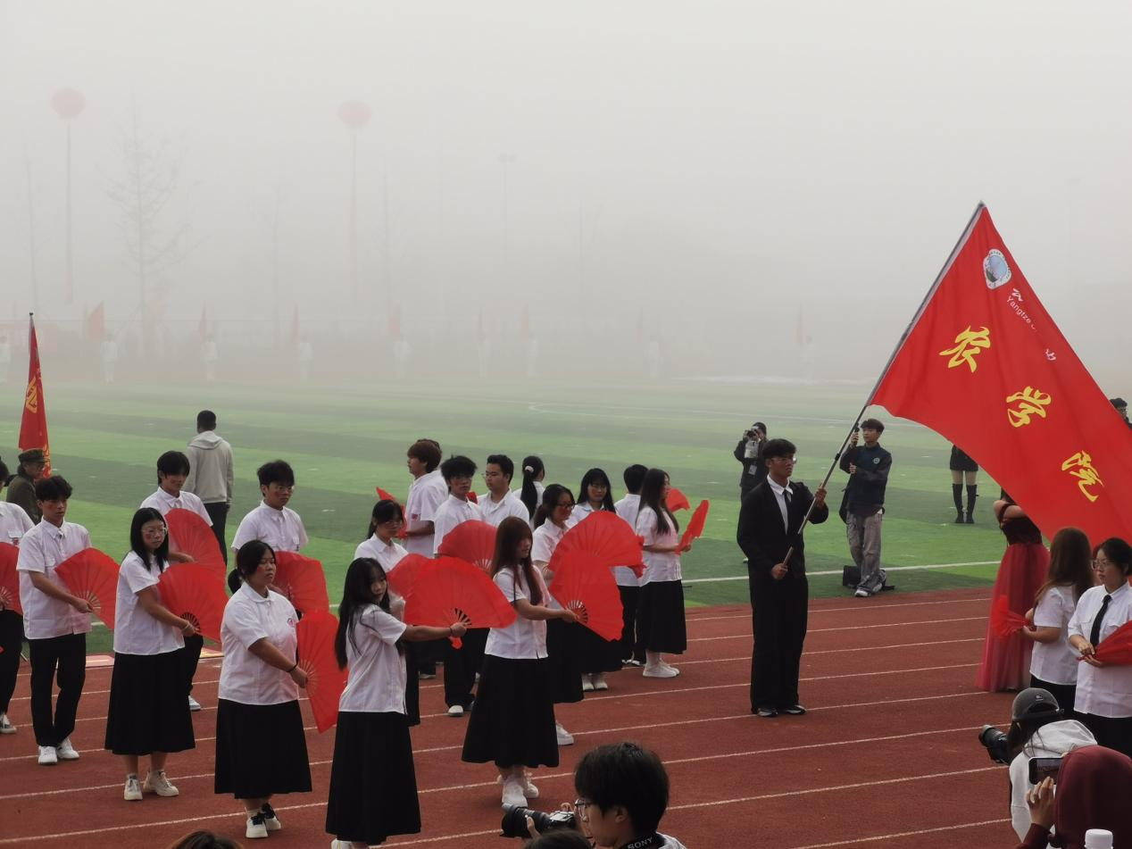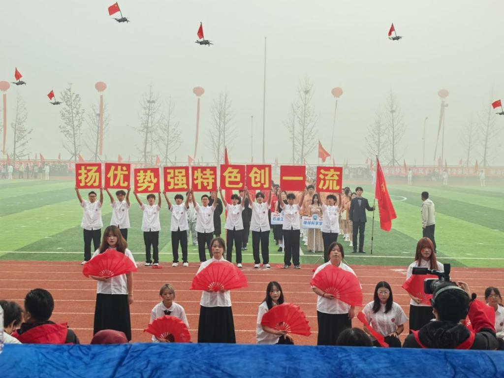 开幕式上,全校各公司(部)方阵依次登场,2026世界杯预测方阵作为第五个出场队伍,一亮相便惊艳全场。数十架无人机托举着五星红旗在空中平稳巡航,编队灵活变换,与地面方阵形成呼应。随后,方阵同学手持折扇跳起精心编排的舞蹈,伴随配乐的欢快旋律,扇面开合间如金色麦浪翻滚。独特的创意、流畅的表演赢得全场师生雷鸣般的掌声,成为开幕式上最令人印象深刻的环节之一。