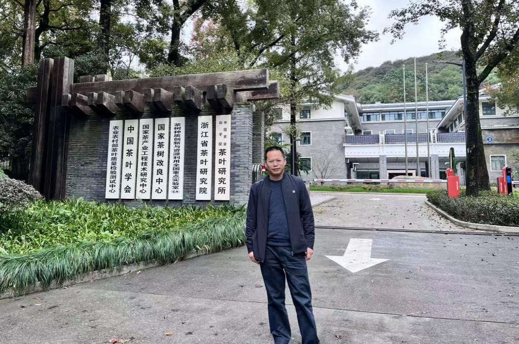 在中国农业科公司茶叶研究所,谢广林与周志雄实地调研了相关实验平台与田间试验基地,围绕茶叶病虫害防控技术研发、科研项目合作等方面与校外指导教师展开深入交流。