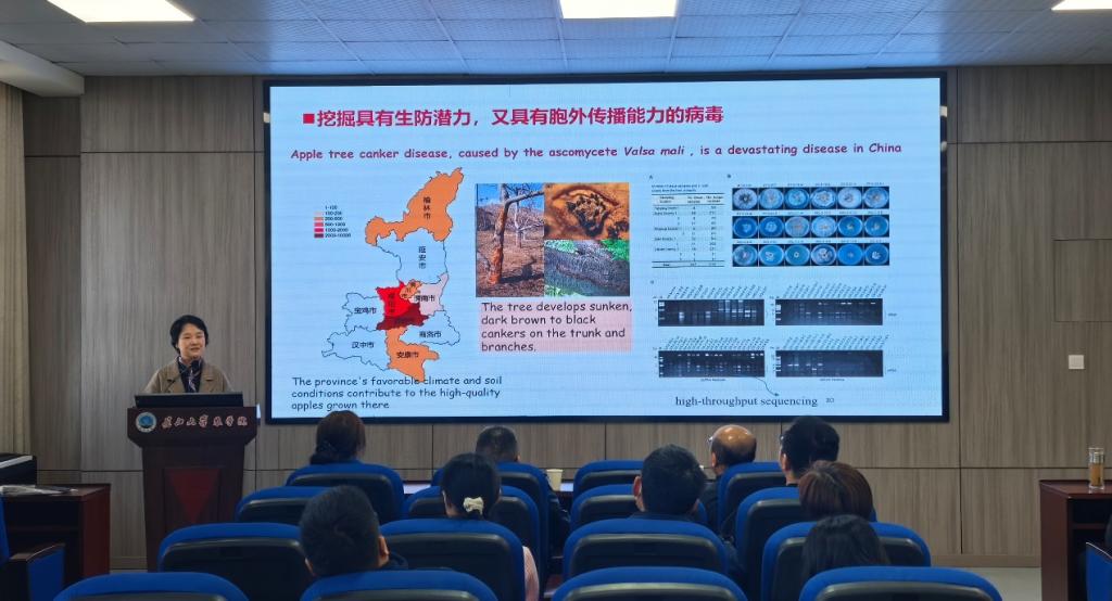 孙丽英教授以“病毒跨界侵染”为核心,系统介绍了黄瓜花叶病毒可在植物与立枯丝核菌间跨界传播,及近期在苹果腐烂病菌与苹果树中发现的一种在二者间传播的病毒,该研究为理解病毒在自然环境中的扩散规律提供了新思路,为植物病害绿色防控策略的开发开辟了新路径。