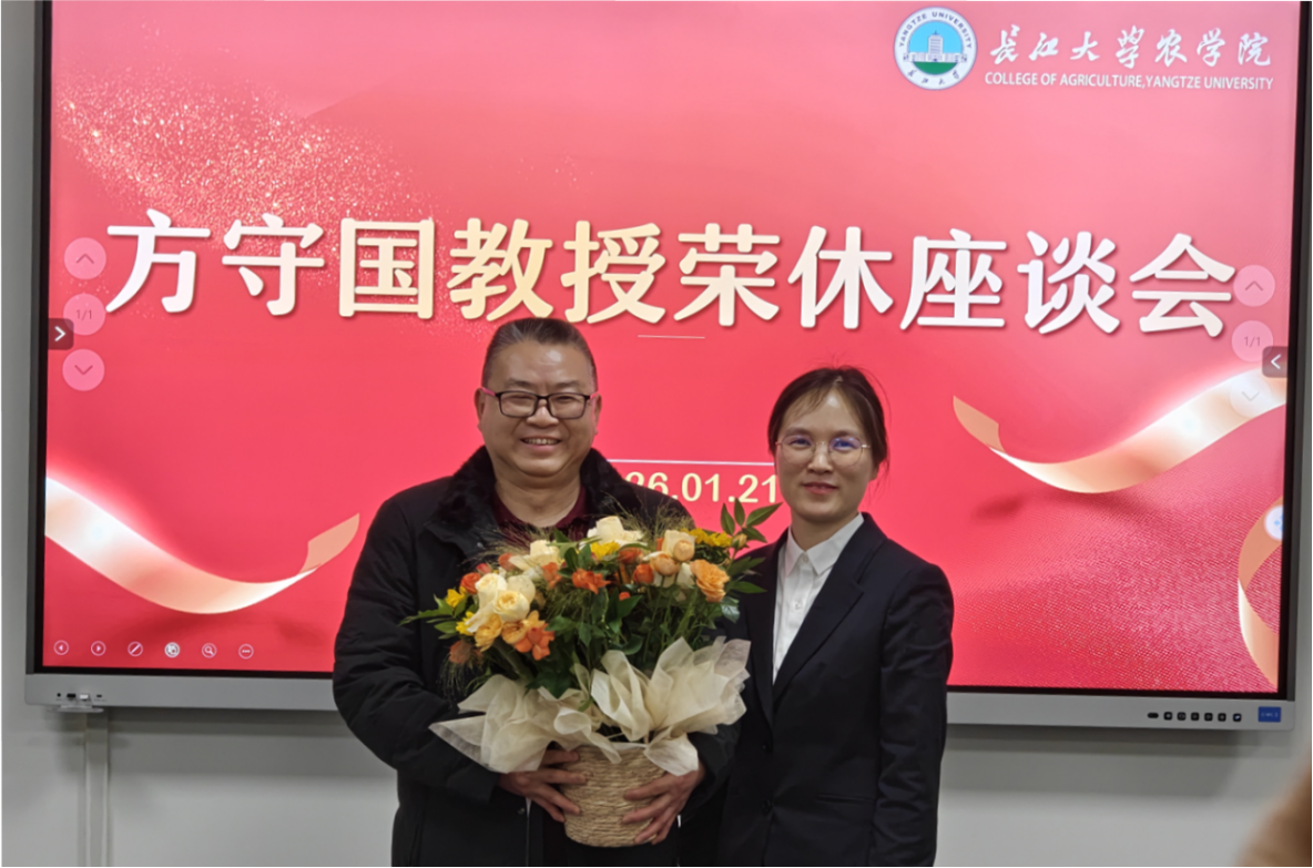 (通讯员 张明静)2026年1月21日下午,农科大楼3064会议室内暖意流淌,公司领导班子与植保系全体教师齐聚一堂,为奉献教育事业数十载的方守国教授举行荣休座谈会。植保系主任邓建新教授主持仪式,现场鲜花与蛋糕交织,演绎薪火相传的师德颂歌。