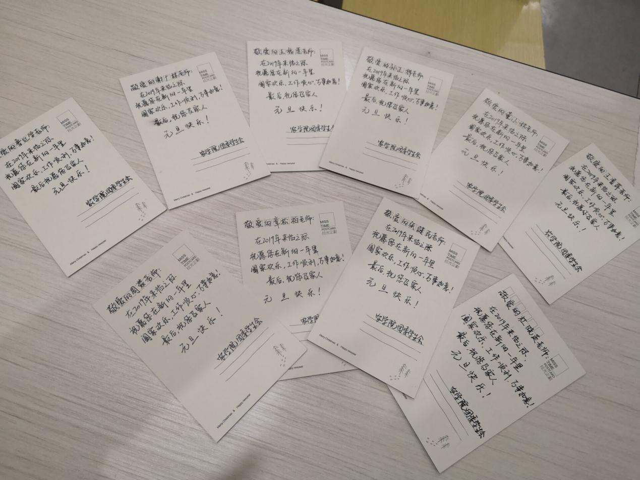 随后,几位“小农人”带着满心的欢喜把贺卡送到每一位老师的办公室和宿舍。老师们在收到同学们送来的贺卡时,脸上露出了幸福的笑容,同时也祝福大家新年能够学业有成,天天向上。