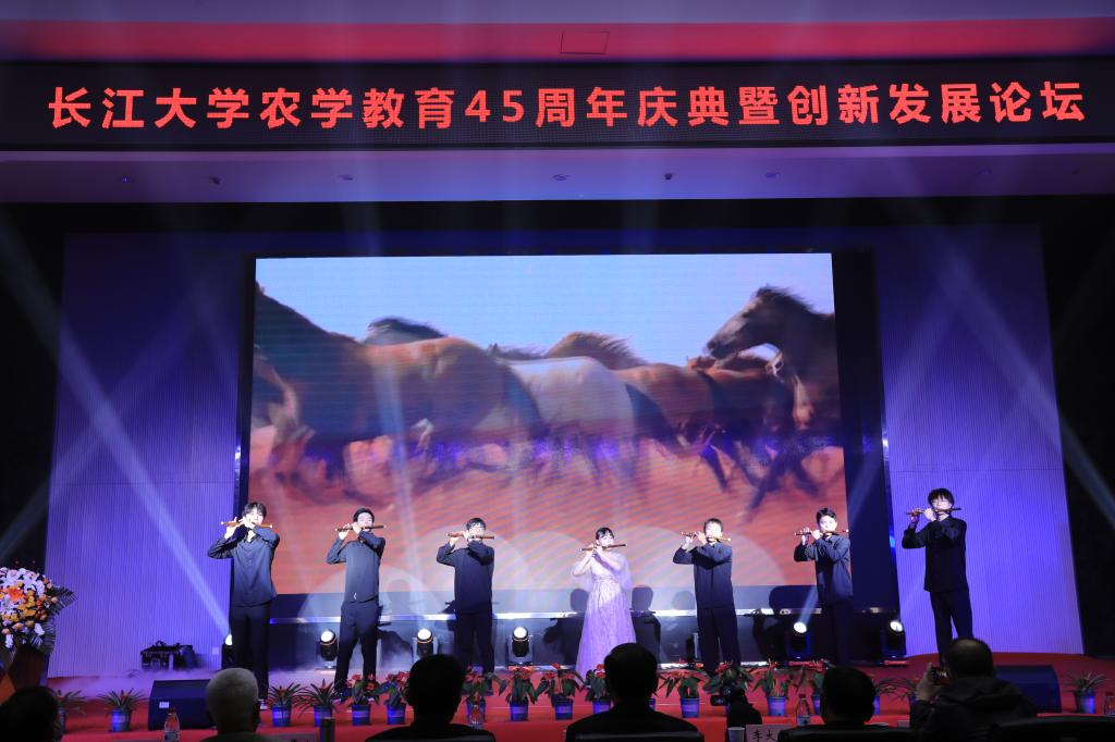 活动中还穿插了节目表演。“45年前,我们在沙洋,七里湖边,书声朗朗……”,诗歌朗诵《农学人的光荣和梦想》回顾历史、展望未来,将活动推向高潮。一个个节目,表达了师生对农学教育和农业科技的热爱与深情,展现了农学师生献身农业发展的无私精神。庆典在民乐合奏《扬鞭催马运粮忙》和《在希望的田野上》中落幕。