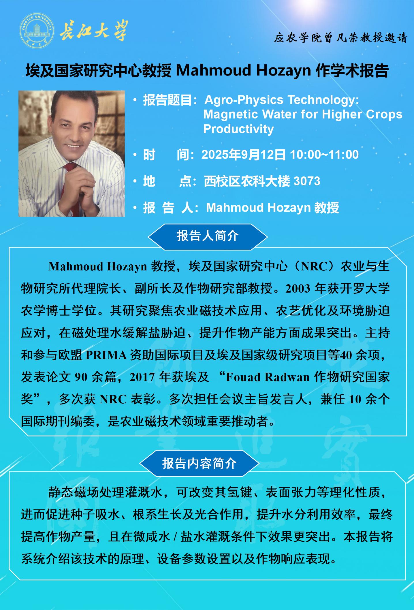 2025年学术报告(十五):Agro-Physics Technology-Magnetic Water for Higher Crop Productivity