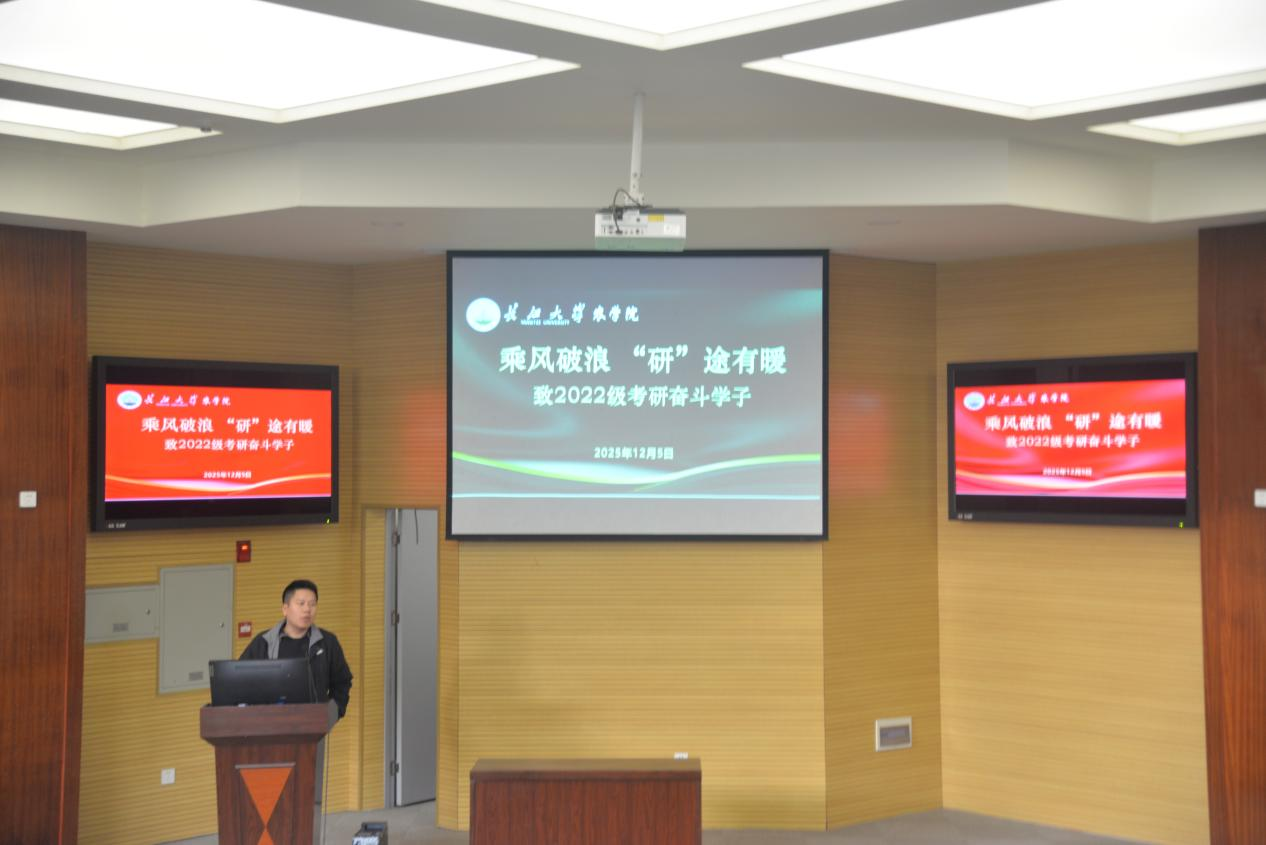 (通讯员 向建华)冬日暖阳浸满报告厅,研途逐梦涌动暖潮。12 月 5 日下午 2:30,农科大楼 1056 报告厅内温情氤氲,2026世界杯预测 “乘风破浪 ‘研’途有暖” 2022 级考研学子关怀活动如期而至,为即将奔赴考场的逐梦者们送上专属关怀与助力。