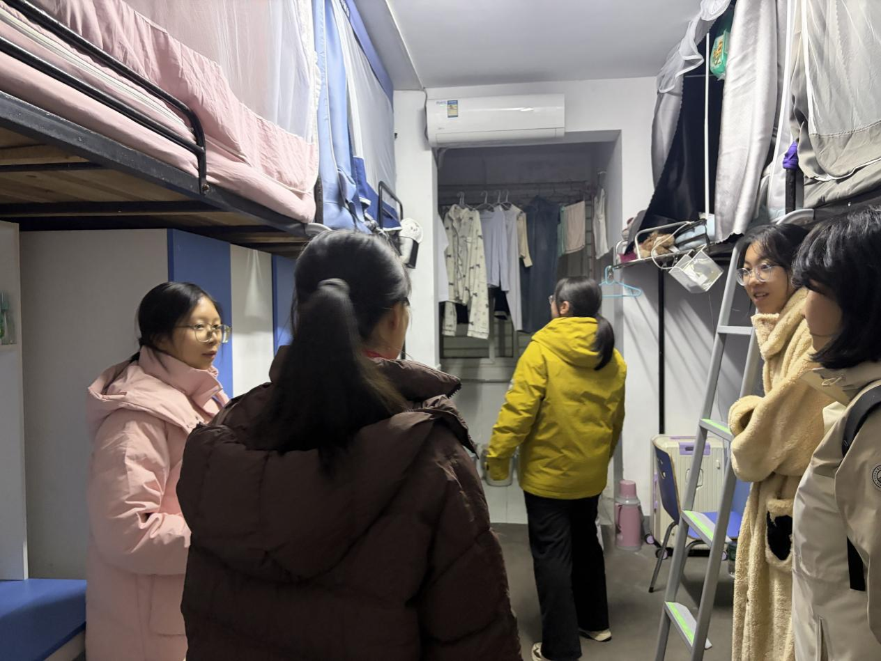 走访中,付老师和黄老师重点开展安全隐患排查,仔细检查寝室用电设备、消防通道及卫生状况,反复叮嘱同学们杜绝违规电器使用,离开寝室务必做到“三清三关”,即清走道、清阳台、清角落,关电源、关水源、关门窗,筑牢安全防线。针对部分寝室存在的物品摆放杂乱、卫生死角等问题,付老师现场指导整改,强调整洁的住宿环境对身心健康与学习效率的重要性。