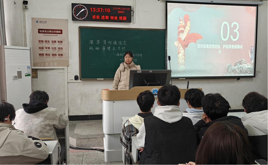 3月18日下午,于7教207植保卓32401班团支部副书记高金凤组织开展团会活动,活动中,高金凤以“以案明纪”为抓手,组织团员们观看禁毒警示教育片,向他们直观展示毒品的危害,筑牢禁毒思想防线。同时还穿插了两会精神知识快问抢答,团员们在互动交流中明辨事理,深刻认识到护航青春健康成长、严守团员信仰底线的重要性。