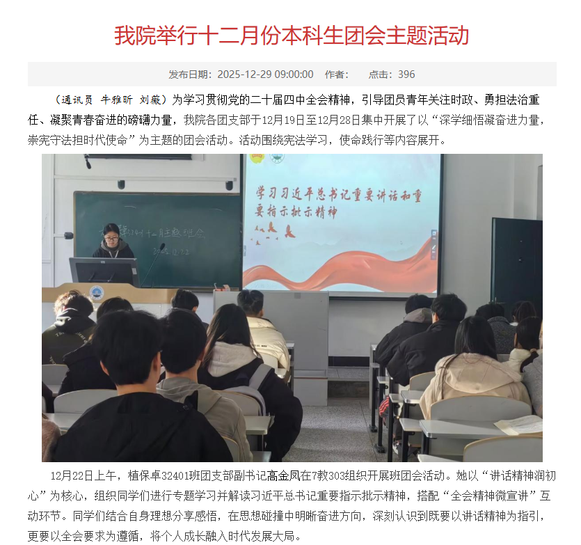 支部以思想引领为核心,严格落实 “三会两制一课” 制度,实现理论学习全覆盖。组织运行规范顺畅,全面推行班团一体化,团务管理严谨,推优入党程序完备。以学风建设为抓手,搭建学业互助平台,全体团员100%完成注册志愿者认证。积极推动第二课堂建设,以学促行提升团员综合素养,依托新媒体阵地展示支部风采,彰显新时代农学青年的责任与担当。