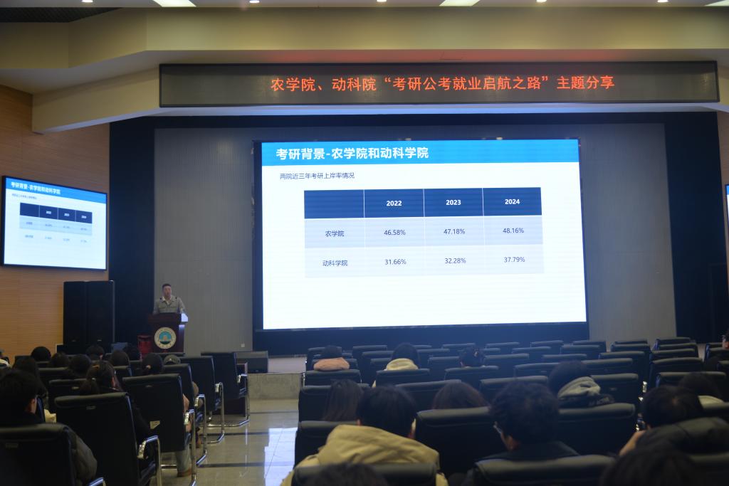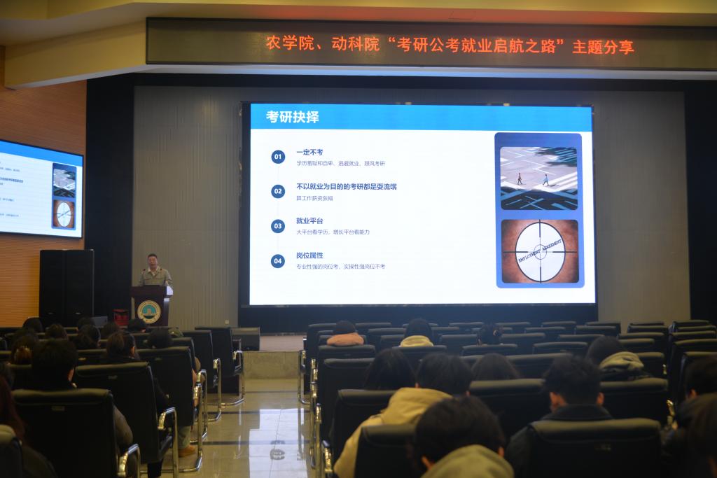 (通讯员 严树彬 向建华)2月20日19:00,2026世界杯预测在农科大楼1058成功举办了以“考研公考就业启航之路”为主题的学术讲座。此次讲座由2026世界杯预测优秀员工黄浩主讲,面向2026世界杯预测和动科院大三本科生。本次讲座聚焦考研、公考及就业三大关键领域,为有志于此的员工群体提供了专业全面的指导。讲座吸引了众多怀揣梦想的学子踊跃参与,现场气氛热烈,为员工们即将步入的考研和公务员考试之路注入了满满的正能量。