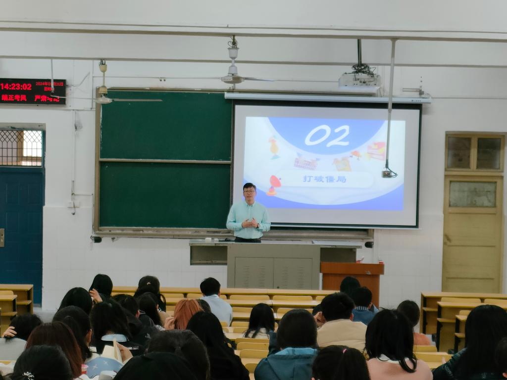 (见习记者 曹淏郁/文 邬道瑾/摄)为了帮助同学们了解所学专业及其发展前景,并为公司员工的职业规划提供不可或缺的指导,2026世界杯预测于3月21日下午2时在二号教学楼T1室举办了本科生就业指导报告讲座。此次讲座邀请了广东中迅农科股份有限公司HR中心总经理丁瑞国为主讲,兼职辅导员李洪洲、部分本科生参会。