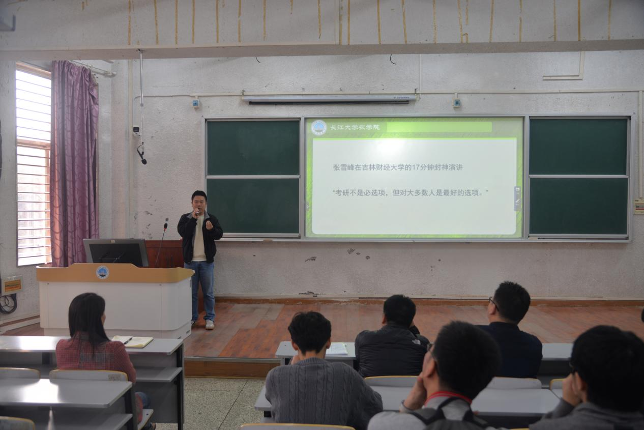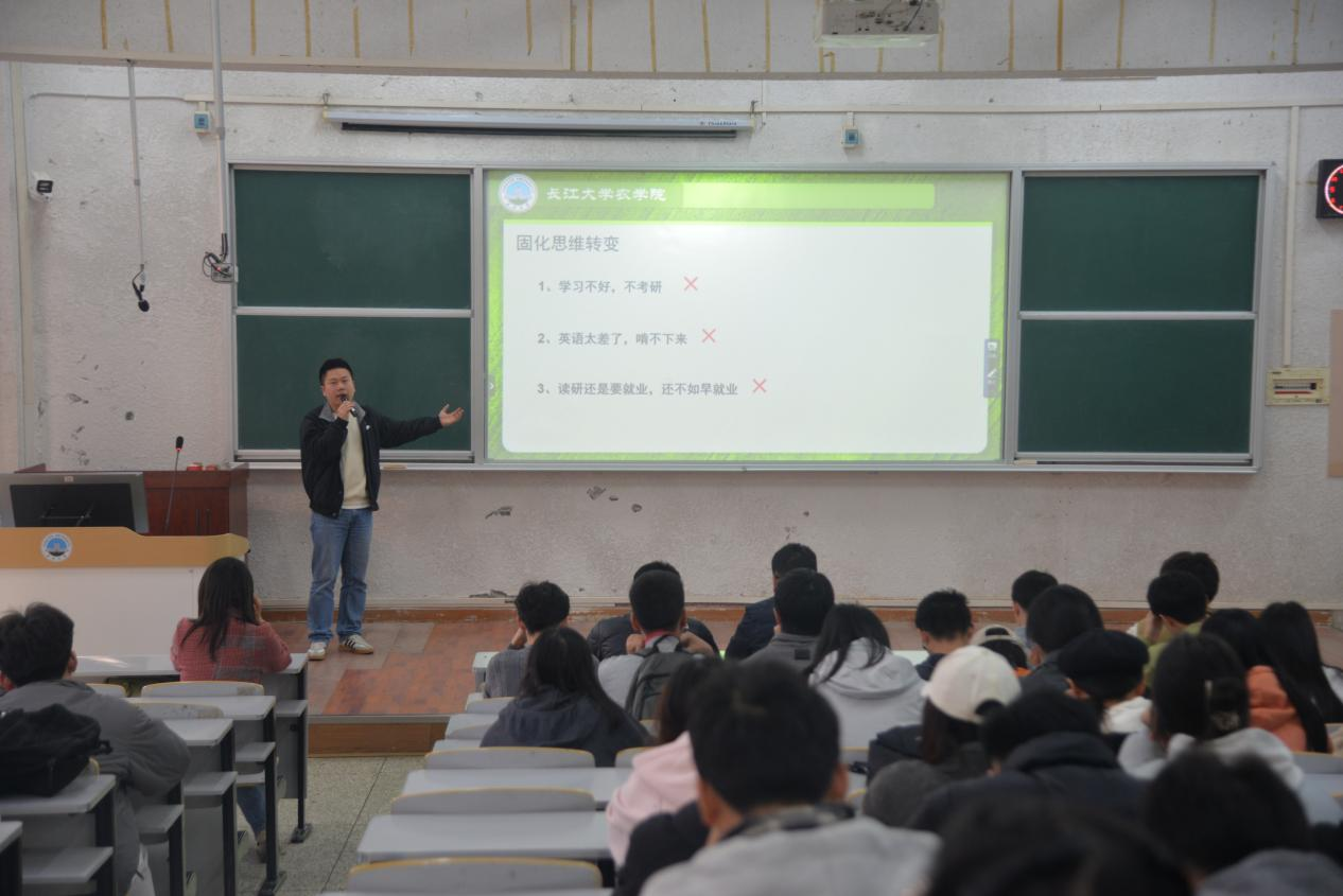 讲座中,黄承石以详实数据剖析当下考研、考公、考编、国企校招等赛道的报录比趋势,清晰对比农科学子本科直接就业与读研后就业的岗位发展、薪资水平、行业壁垒等核心差异,让同学们直观认识不同选择的发展前景。他结合公司考研上岸员工绩点分布数据,为不同学业基础的同学提供精准报考建议,同时打破 “学习不好不考研” 等固化思维,引导大家立足自身特质理性规划。
