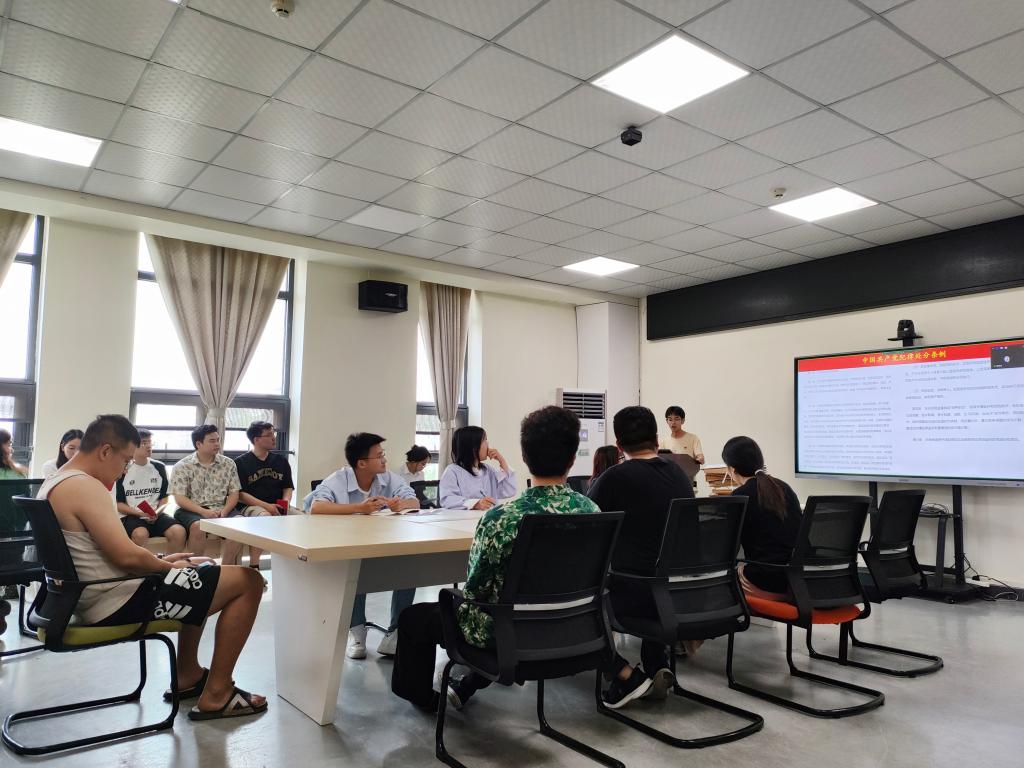 “全体起立,举起右拳,跟我宣誓……”张银带领全体党员重温入党誓词。罗丽娅对本月党支部党费收缴情况简要说明。罗丁钒为全体党员做《井冈山精神》微党课讲授。常浩雯、吴雅琴带领全体党员学习党的创新理论。“作为新时代的毕业生党员,我们肩负着模范引领的重要使命。我们必须时刻严于律己,在面对重大问题和是非判断时,我们要坚守正确的政治立场,始终同党中央保持高度一致。”陈会丽、江冰、陈悦等结合日常学习生活和工作,交流研讨《中国共产党纪律处分条例》学习心得。
