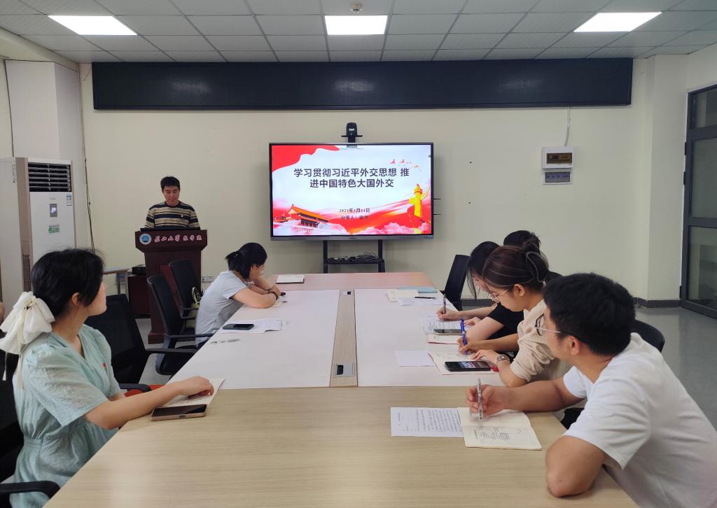 会议伊始,韩硕同志带领全体党员重温入党誓词,并对本月党费交纳情况进行说明,全体党员诵读《中国共产党章程<修正案>》第二章相关内容。随后进入党课(微党课)与集体学习党的创新理论环节,由田尧同志带领党课学习《贯彻习近平外交思想 推进中国特色大国外交》;余婷煜同志带领学习《习近平总书记关于党的纪律建设的重要论述》、《省纪委监委通报5起群众身边不正之风和腐败问题典型案例》,汤娟同志带领学习《省委常委会党纪学习教育读书班开班式举行》、《市委常委会党纪学习教育读书班开班式举行》、《公司举办党纪学习教育专题辅导报告暨公司党委理论学习中心组(扩大)学习会》。