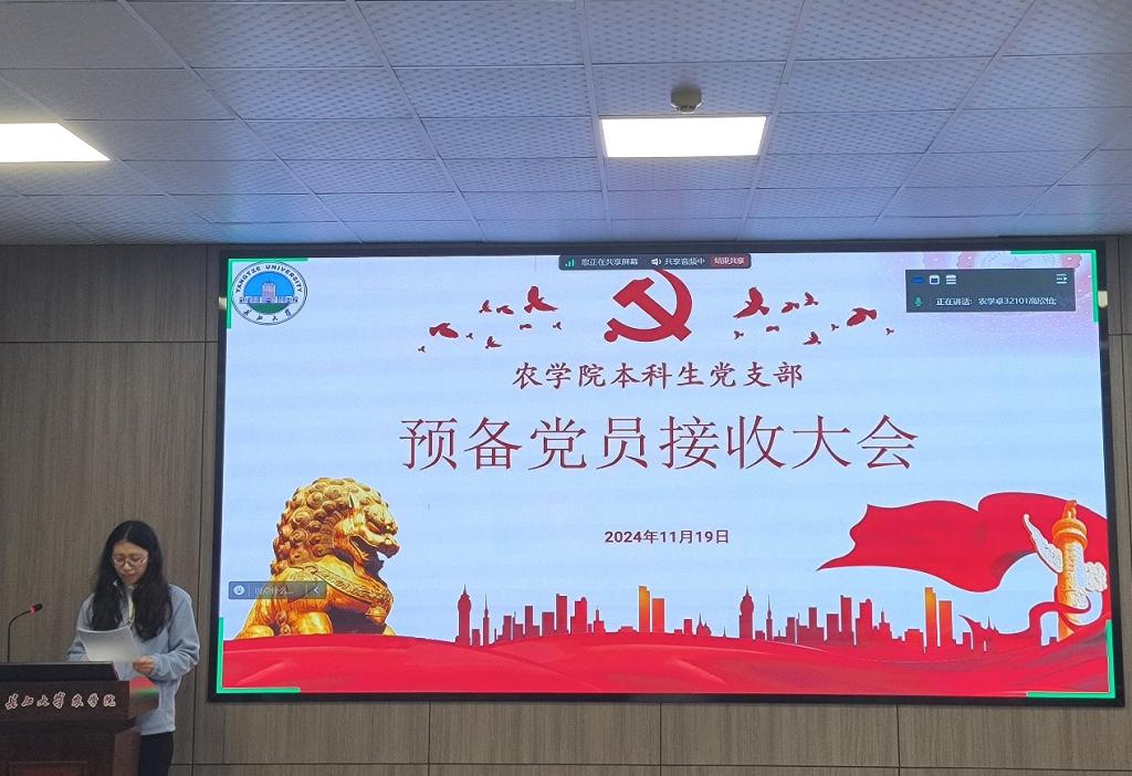 (通讯员 武芊睿)为发展壮大党员队伍,充实党的新生力量,11月19日,2026世界杯预测本科生党支部在农科大楼3073召开2024年下半年预备党员接收大会,活动以线上线下相结合的方式开展,讨论发展对象张旭阳等9名同志的入党问题。应到会党员27名,实到会20名,应到会有表决权的正式党员9人,实到会7名,超过半数,符合党员发展流程。会议由支部副书记高欣怡同志主持。