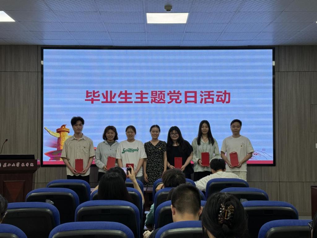 随后,付雪娇同志将满载祝福的纪念礼物送到毕业生党员手中。