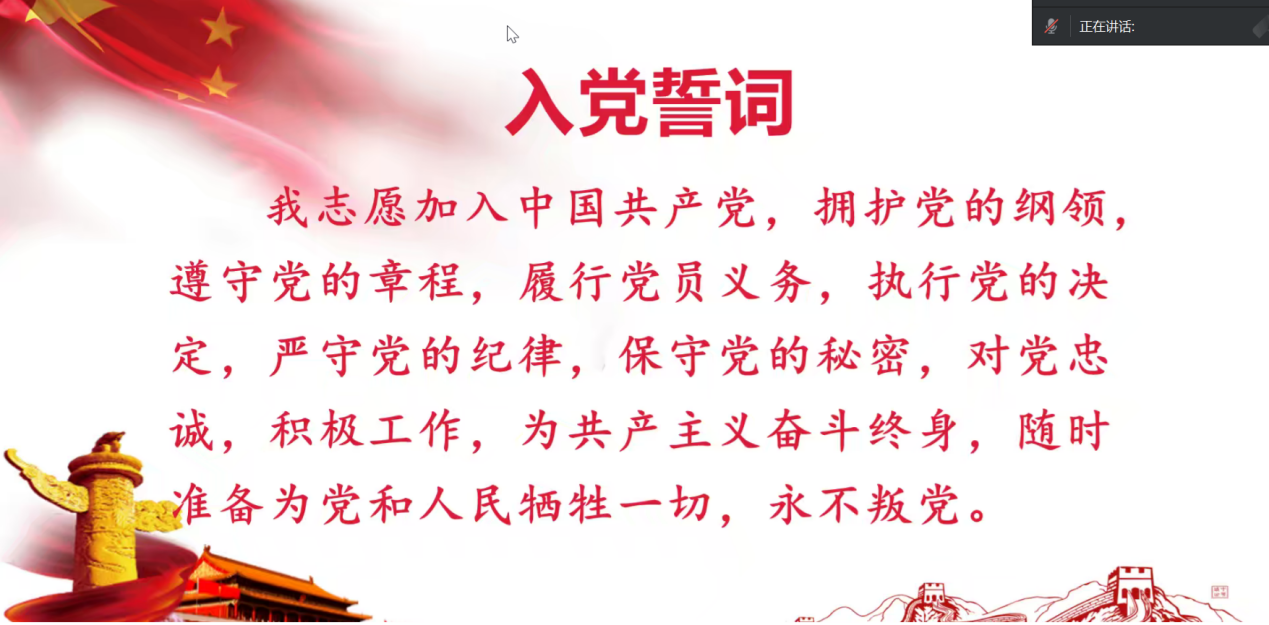 会议伊始,刘春艳同志带领全体党员重温入党誓词,王思婷同志对本月党费交纳情况进行说明。