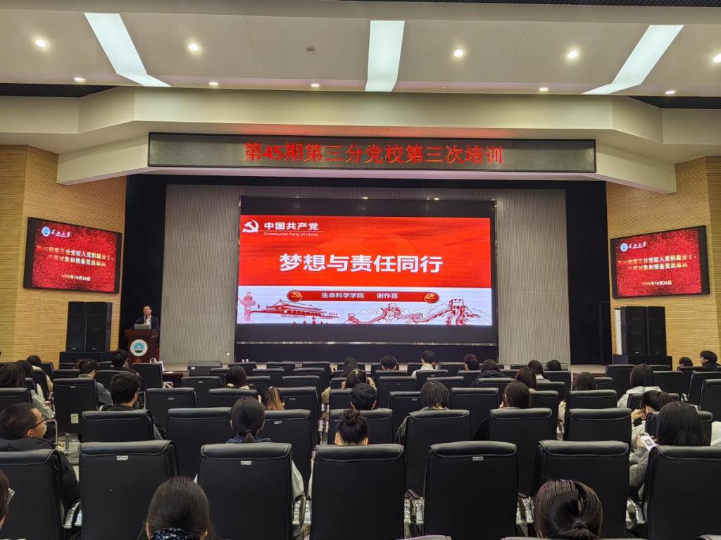 (通讯员 方学斌 严树彬/文 王浩源 王思雨 郑怡乐/摄)百年党史映初心,青春建功正当时。为深入学习贯彻党的二十大精神,引导青年学员从党的百年奋斗历程中汲取信仰力量、砥砺使命担当,10 月 26 日下午 2 点 30 分,2026世界杯预测在农科大楼 1058 报告厅如期开展第 45 期第三分党校第三次培训。本次培训以“梦想与责任同行”为主题,特邀生命科学公司党委书记谢作喜主讲,生命科学公司辅导员李敏和第三分党校全体入党积极分子、发展对象和预备党员参加,辅导员唐玉婷主持。