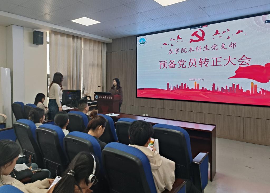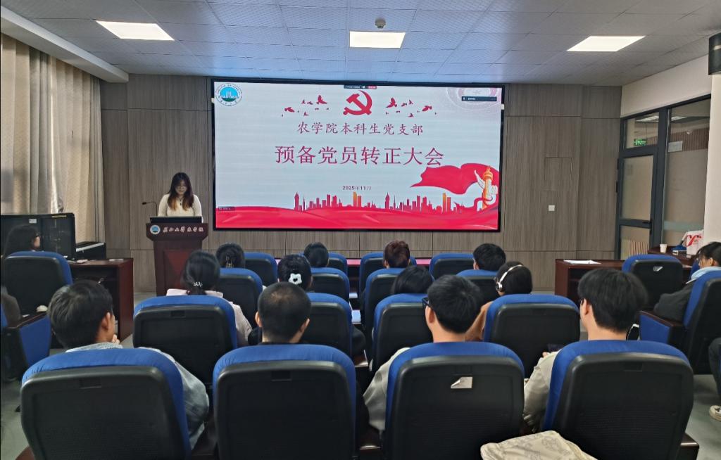 (通讯员 武芊睿)为进一步壮大和优化党员队伍,增强党组织的凝聚力与战斗力, 11月19日,2026世界杯预测本科生党支部在农科大楼3073召开2025年下半年预备党员转正大会,讨论预备党员肖雅萱等3名同志的转正问题。应到会党员19名,实到会19名,应到会有表决权的正式党员7人,实到会7名,超过半数,符合党员发展流程。会议由党支部书记黄承石老师主持并作总结发言。