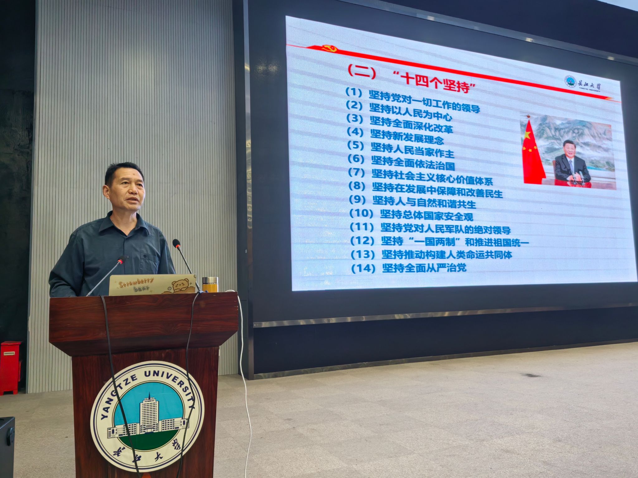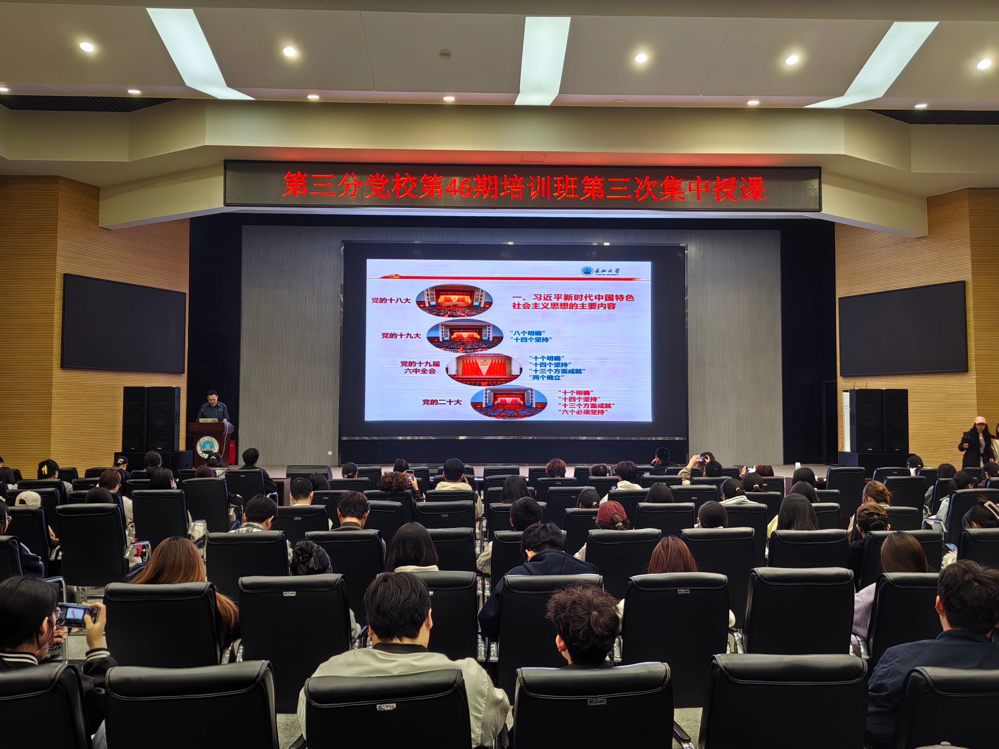 (通讯员 张源康/文 吴泓萱 胡雪晴/摄)为深入学习贯彻党的二十大精神,持续深化党史学习教育,筑牢青年学子思想根基,4月7日晚,第三分党校第 46 期培训班第三次集中授课在农科大楼1058报告厅顺利开展。本次培训聚焦学习贯彻习近平新时代中国特色社会主义思想主题教育,由农公司党委书记周锦华主讲,公司辅导员唐玉婷及第三分党校全体入党积极分子、发展对象、预备党员共同参与。