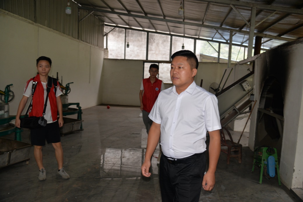 会后,谭亮魁带着师生沿着鹿溪河周边开展了为期3天的走访调查。首先选择走访湖北省黄茶非遗文化传承人杨先政,参观了黄茶制茶基地。杨先政对谭亮魁及实践队员一行表示欢迎,他从鹿苑黄茶的历史发展、文化背景、制作工艺进行了深入讲解。他表示,同学们要像这黄茶一样,经历杀青、拣剔、炒干后,依旧能展现出嫩香清锐,人生如茶清香淡远,茶里人生苦中自有清香。