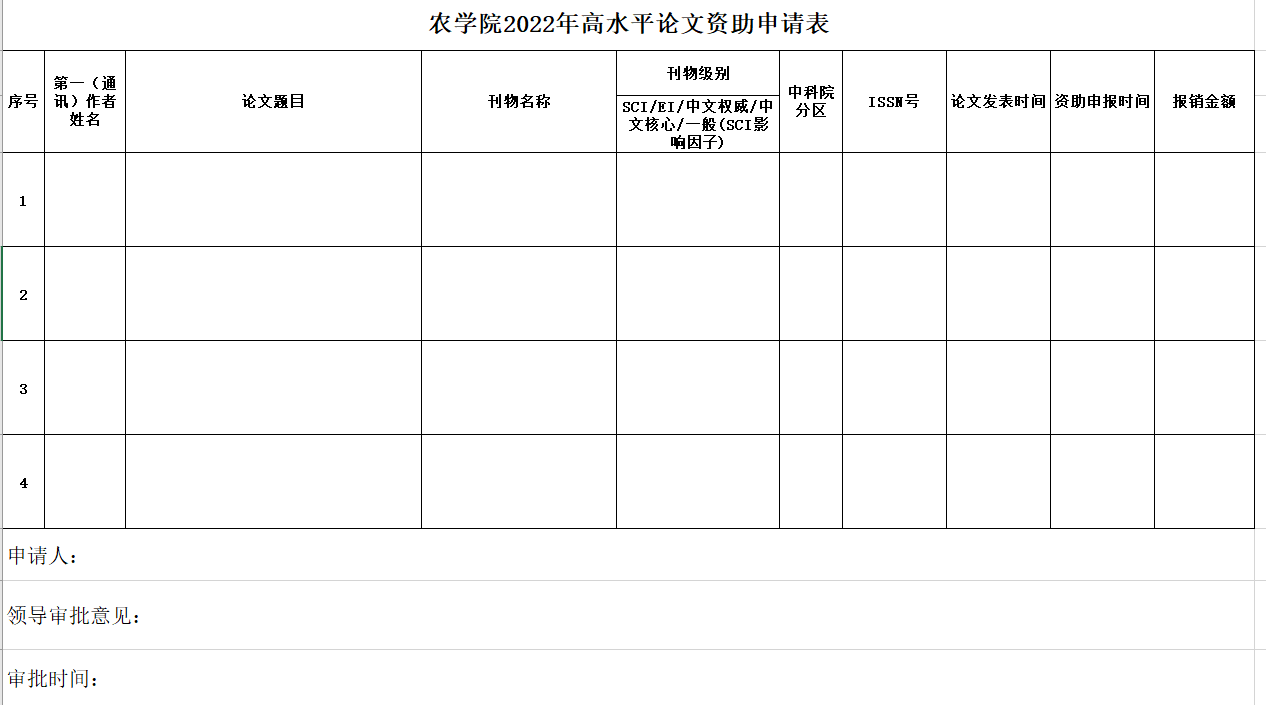2022年高水平论文资助申请表