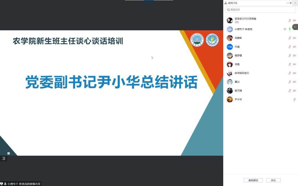 培训结束后,尹小华提出具体要求,班主任要积极学习并向班级新生宣传心理健康知识,营造起积极、健康、向上的班级文化;在班级内要适当组织开展有益于员工心理健康的教育活动,及时了解掌握员工的心理状态;日常管理中,若发现班级有心理异常的员工要第一时间与学工队伍联系,要全程参与员工心理危机干预工作,做好家校沟通的桥梁。