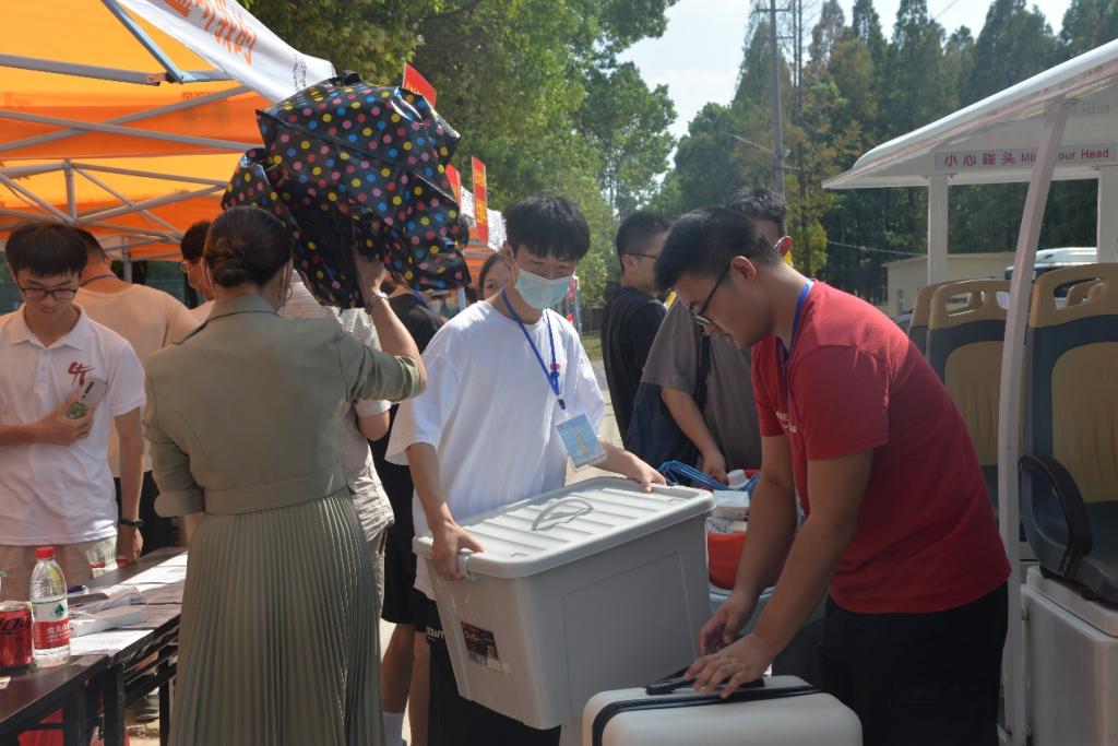 迎新志愿者帮助新生搬运行李