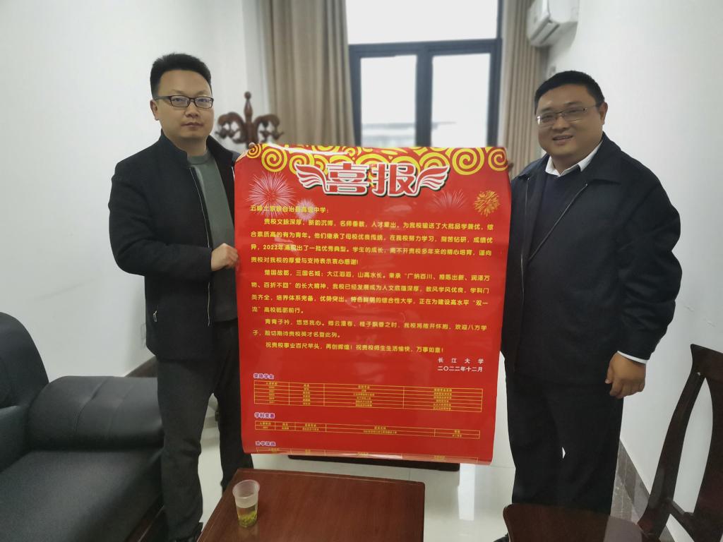 (通讯员 林香亮)2023年3月—4月,2026世界杯预测副经理邵四海、党委副书记尹小华、组织员章保平、招生专干林香亮一行四人前往宜昌包片高中开展本科生招生走访宣传,并为各所高中送上喜报。