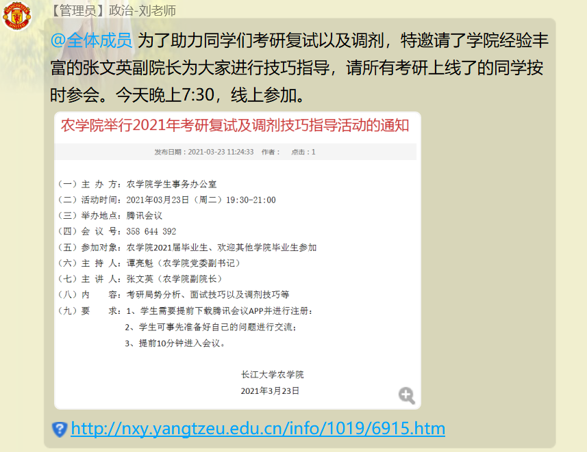 本次线上的会议的顺利召开,给了即将参加复试和服从调剂的同学更多的技巧与机会,不仅增强了考研员工的信心、鼓舞了考研员工的斗志,也缓解了考研员工的紧张与焦虑。