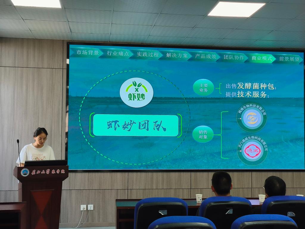 由周燚等老师指导,沈树林等同学参与的项目《千“菌”万虾——小龙虾开口饲料降脂防霉技术领军者》分别荣获主体赛铜奖。该项目聚焦于解决传统小龙虾饲料硬、发酵霉变快、虾苗易病问题,团队历时3年完成菌种配比,并采取创新措施,如今发酵饲料优势明显,养殖试验效果优异。