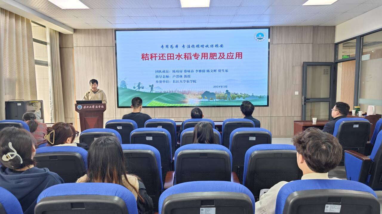 项目一团队介绍了他们的秸秆还田水稻专用肥及应用项目。该项目旨在有效利用农作物秸秆资源,提高土壤肥力,实现农业资源循环利用。团队成员通过PPT展示项目的研究背景、技术路线、实验结果及应用前景四个方面,深入浅出地介绍了他们的项目进展和成果。他们讲述了此项目的技术创新点、应用前景及未来展望,并回答、接受评委老师们的提问与建议。