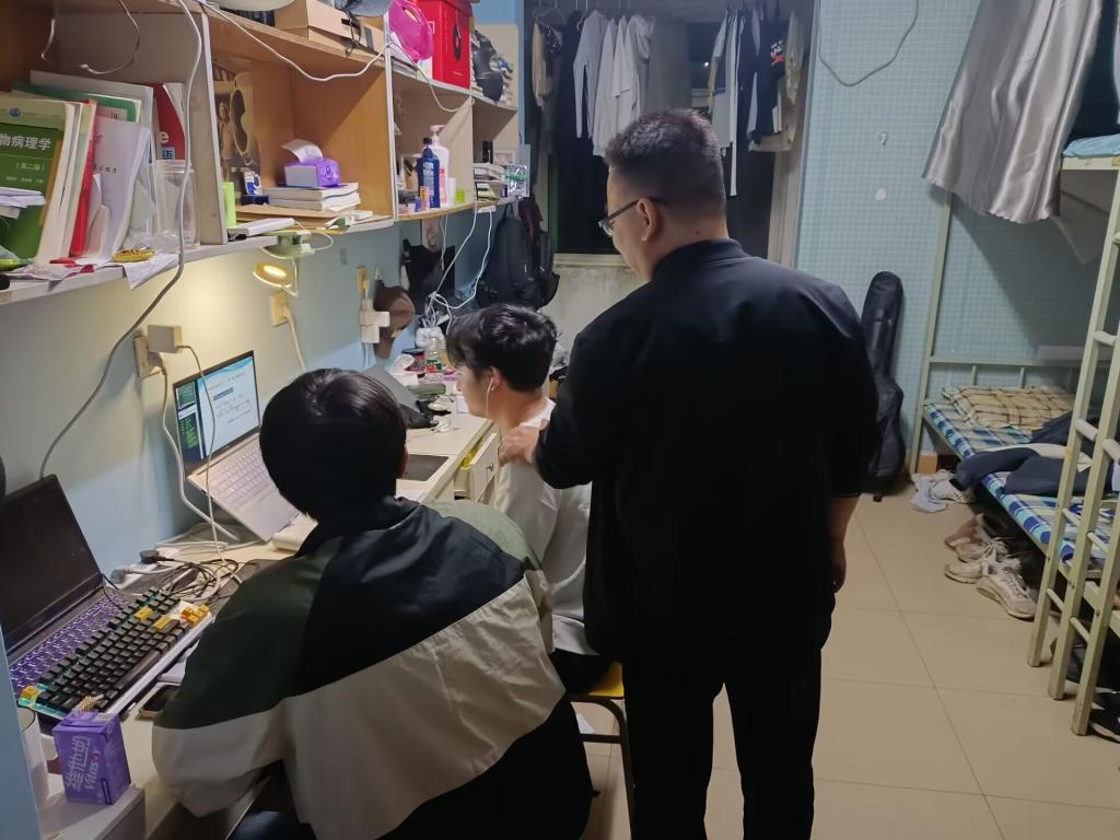 (通讯员 卢李润)为了更全面、更有效地加强对于员工宿舍的管理,进一步规范员工的日常行为,农公司党委副书记尹小华老师、学工办主任黄承石老师、兼职辅导员郝梨老师和兼职辅导员孙振艳老师于10月24日晚突击员工寝室检查,旨在确保寝室安全和卫生整洁,并与同学们进行亲切交流,探讨学习、生活、毕业发展等多方面问题。