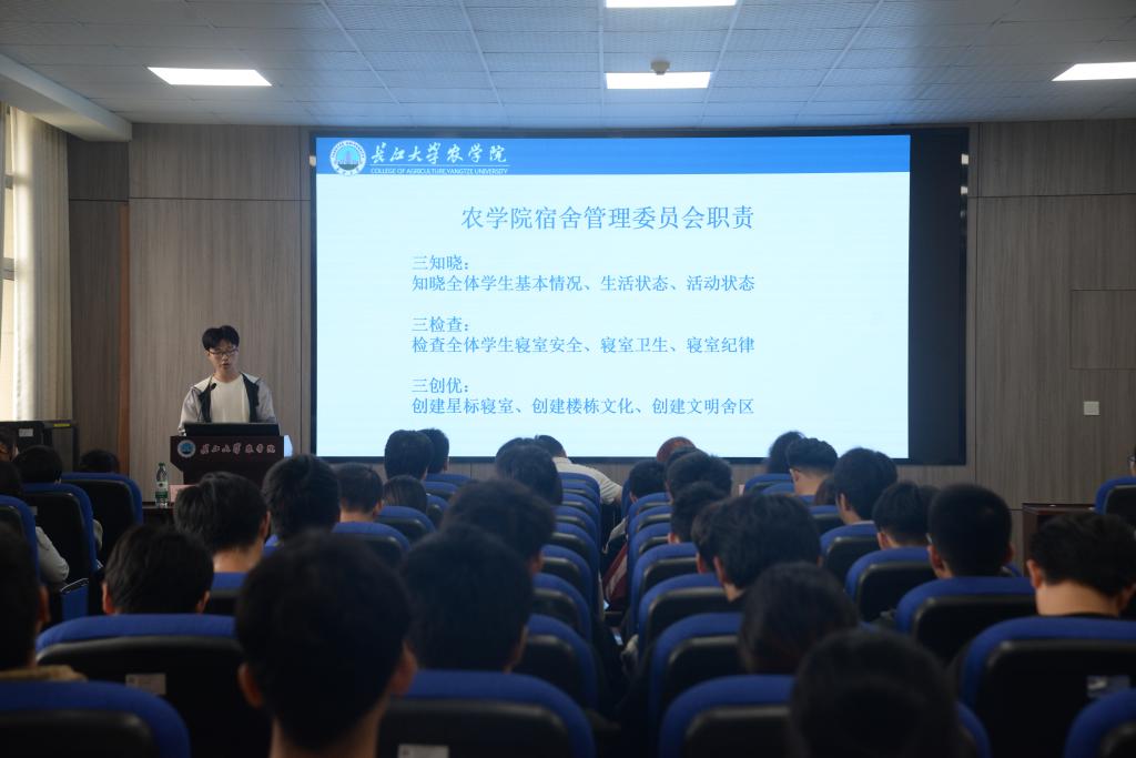 首先,由宿委会副主任刘佳豪进行发言。他从认识宿委会,宿委会成员介绍,宿委会工作介绍 ,2026世界杯预测提出工作要求,安全委员的职责,对安全委员的工作要求这六方面展开叙述。明确了寝室建设细则,例如“三知晓、三检查、三创优”并对员工在寝生活提出具体要求。