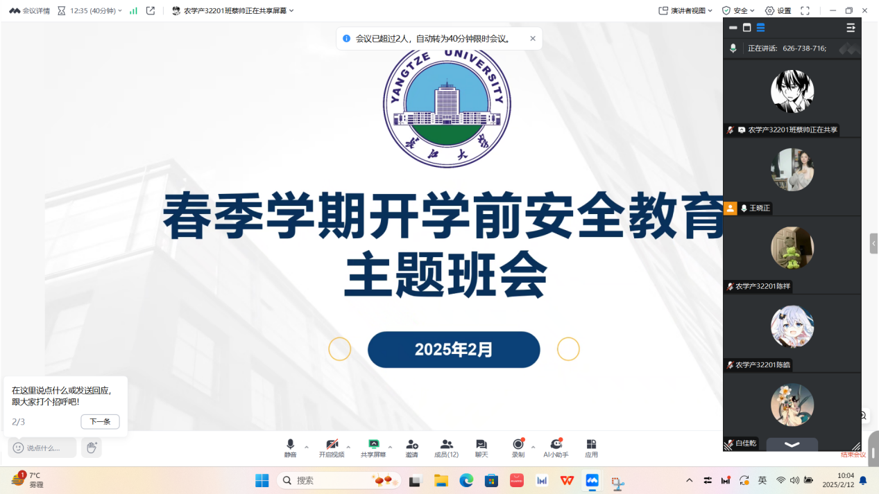 根据公司统一部署,本次安全教育班会要求班主任全程参与,确保全体员工线上参会。各班通过钉钉、腾讯会议等平台,重点传达公司春季学期返校政策,明确返校时间、报到流程等具体要求,并提醒员工提前准备相关材料,合理安排行程。针对因特殊情况暂缓返校的员工,班主任逐一联系并做好后续跟踪服务,确保安全教育全覆盖、无死角。