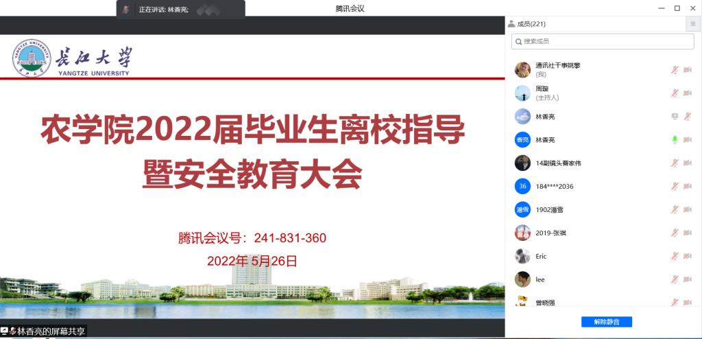 会议对毕业生离校手续办理、毕业生档案处置、疫情防控与安全稳定、体检、毕业典礼等工作做了具体安排。针对毕业生相关工作,林香亮耐心细致地回答了同学们的疑惑,对毕业生登记表填写、档案转递以及离校相关事宜的注意事项进行了强调,教育毕业生要讲文明,守纪律,并祝愿各位毕业生在新的人生旅途中,不要忘记初衷,开拓进取,实现自己的目标和理想。