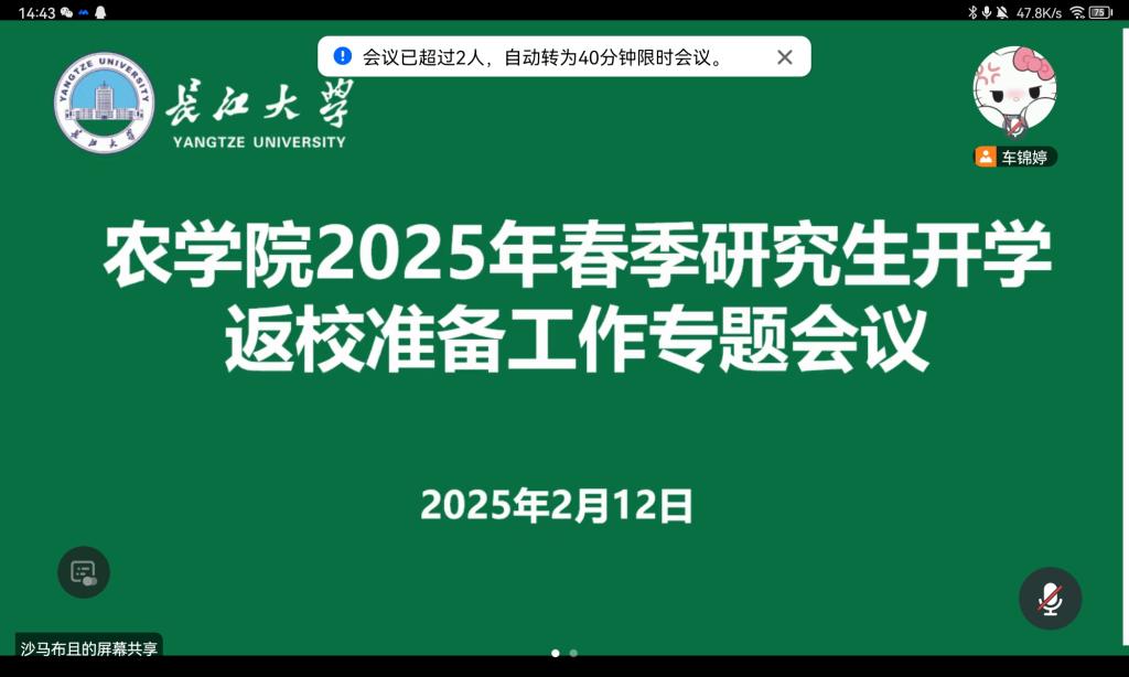 此次会议提升了研究生的安全意识,使同学们更全面地了解开学的相关要求和注意事项,为同学们新学期顺利返校提供了安全保障。
