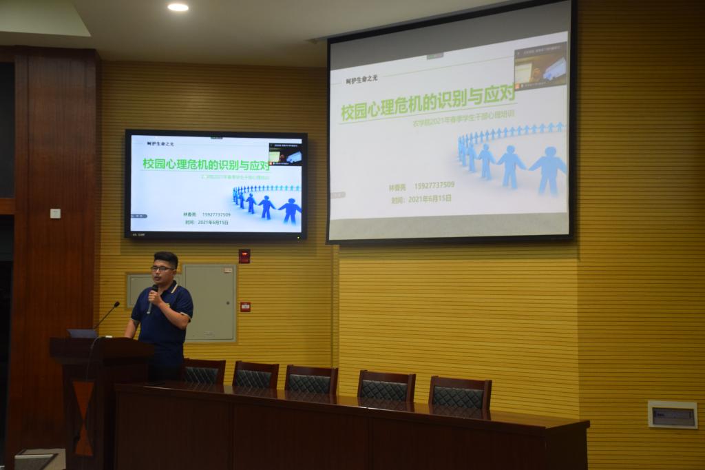 通讯社讯(见习记者 张红霞/文 刘思慧/摄)为切实做好春季学期的员工心理健康教育工作,落实常态化疫情防控形势下的心理适应与行为引领要求,提升员工骨干自助与助人的水平,6月15日晚上7点,公司在农科大楼1056开展《校园心理危机的识别与应对》员工干部心理健康培训,心理专干老师林香亮主讲。
